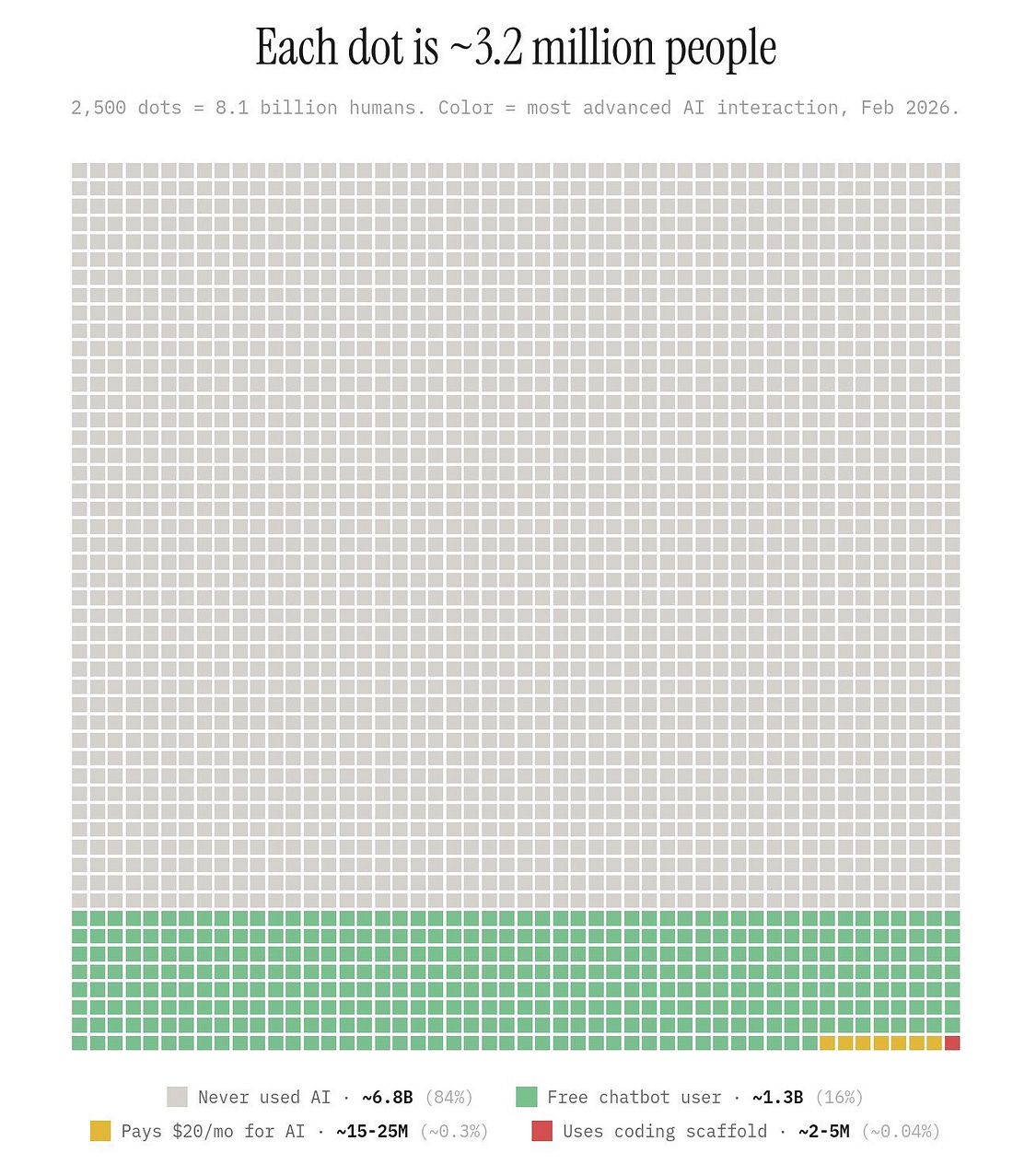 By now you have probably seen the graph showing AI adoption against all the people who have never used it. There is one square in the bottom right corner representing those who use AI for coding. The world is not being overrun by vibe-coding entrepreneurs.