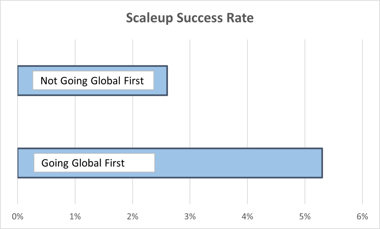 Research from Startup Genome covering 100,000 companies in 40 countries shows that faster growth is achieved by those who target international markets from the outset.